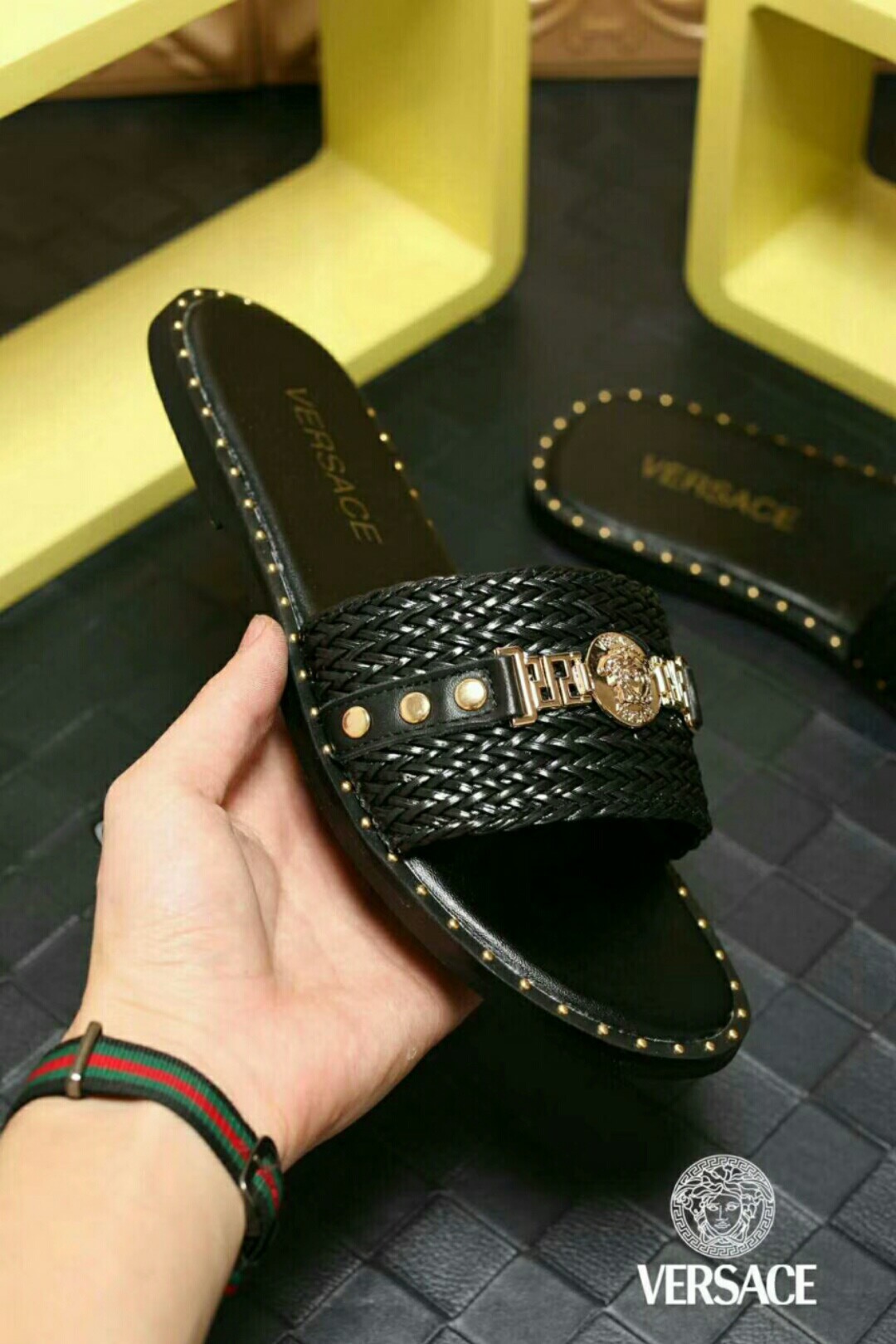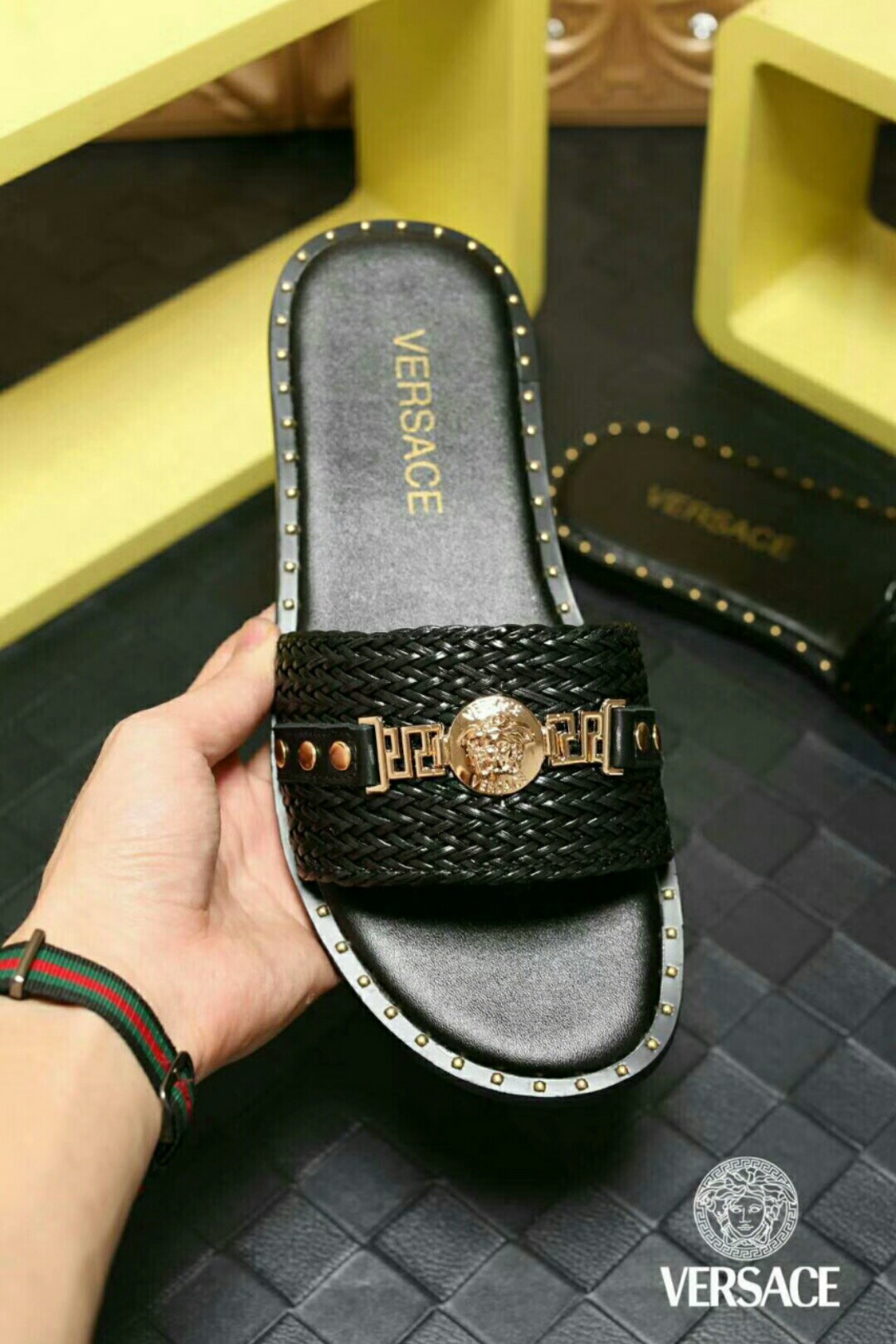 , $50 save up to 80% OFF,[IB137928] Size: US6=EUR38, US6.5=EUR39, US7=EUR40, US8=EUR41, US8.5=EUR42, US9.5=EUR43, US10=EUR44, US11=EUR45, US12=EUR46 , get Replica Versace Slippers For Men from China with free shipping and paypal accepted with return customer.