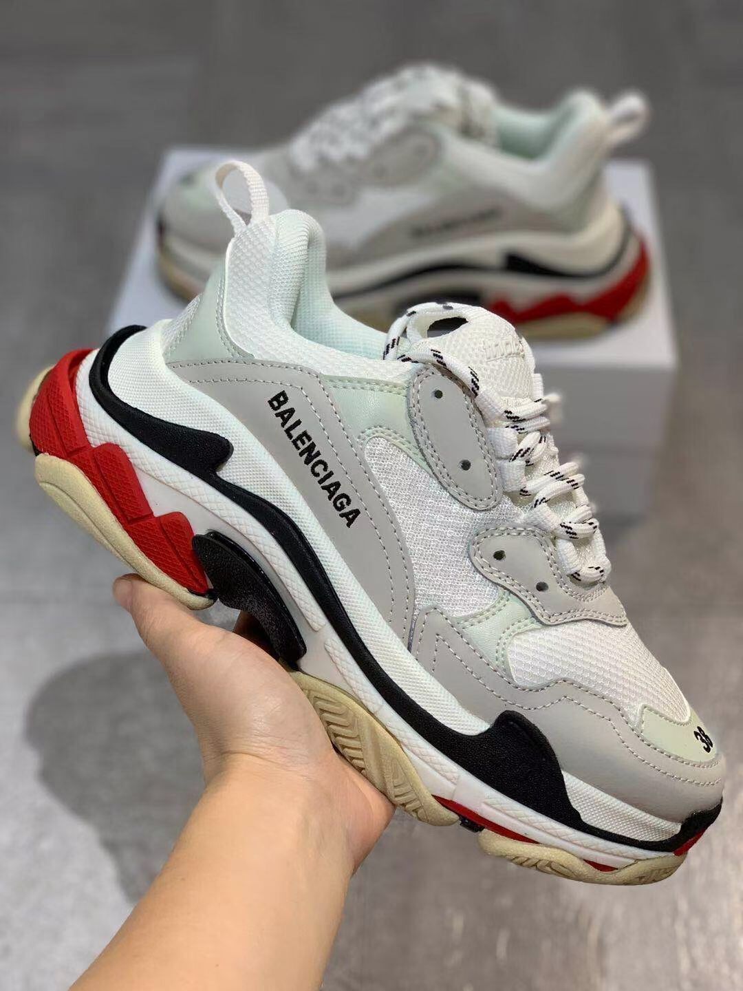 , $105 save up to 80% OFF,[IB143397] Size: US7=EUR39, US7.5=EUR40, US8=EUR41, US8.5=EUR42, US9.5=EUR43, US10=EUR44, US11=EUR45 , get Replica Balenciaga Triple Sneakers from China with free shipping and paypal accepted with return customer.