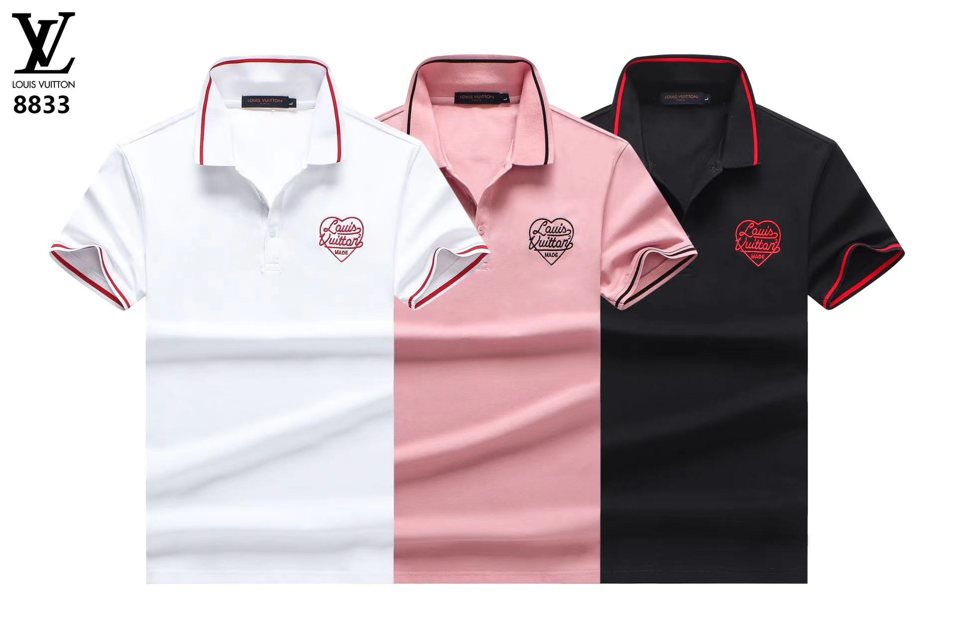 , $25 save up to 80% OFF,[IB154021] Colors: white, pink, black Size: M, L, XL, 2XL, 3XL , get Replica Louis Vuitton Polo T-Shirts for Men from China with free shipping and paypal accepted with return customer.