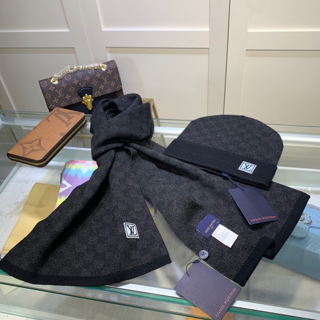 Your Position: ibrand4luxury.ru > Accessories > Scarf > Louis Vuitton Scarf > Men > New Arrivals Louis Vuitton Cashmere Scarf and Hat a Set in 157623