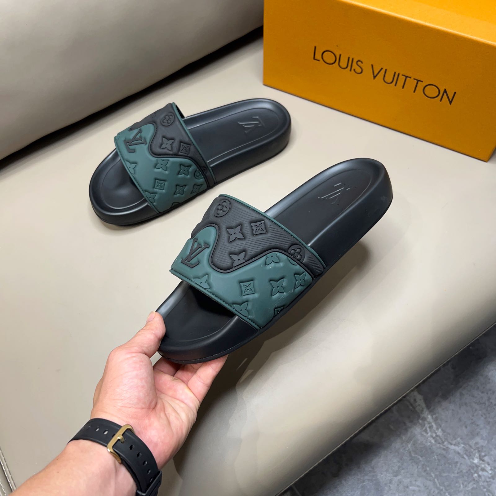 , $55 save up to 80% OFF,[IB170678] Size: US6.5=EUR38, US7=EUR39, US7.5=EUR40, US8=EUR41, US8.5=EUR42, US9.5=EUR43, US10=EUR44, US11=EUR45 , get Replica Louis Vuitton Slippers For Men from China with free shipping and paypal accepted with return customer.