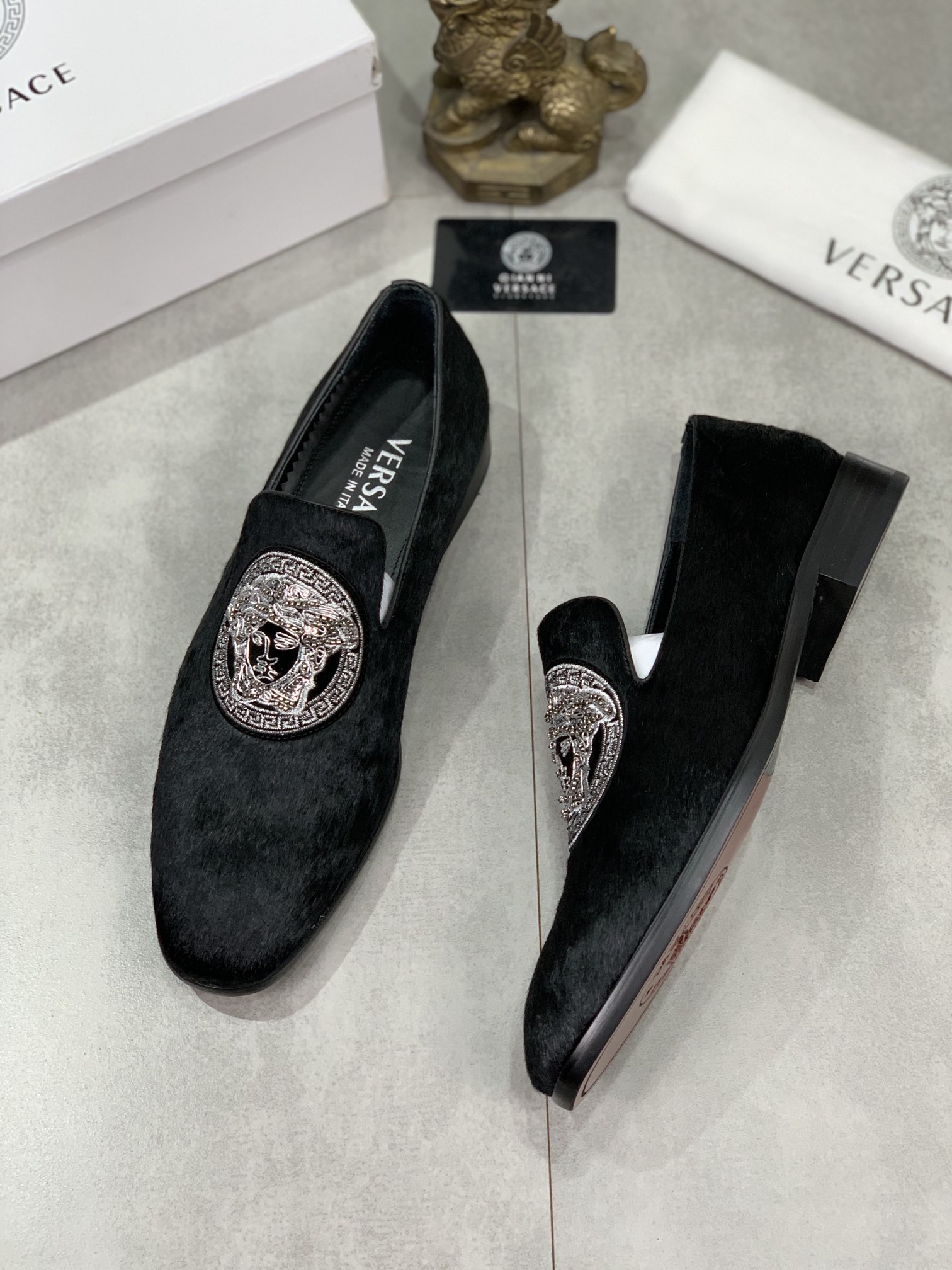 , $85 save up to 80% OFF,[IB178689] Size: US6=EUR38, US6.5=EUR39, US7=EUR40, US8=EUR41, US8.5=EUR42, US9.5=EUR43, US10=EUR44, US11=EUR45 , get Replica Versace Loafers and Drivers For Men from China with free shipping and paypal accepted with return customer.
