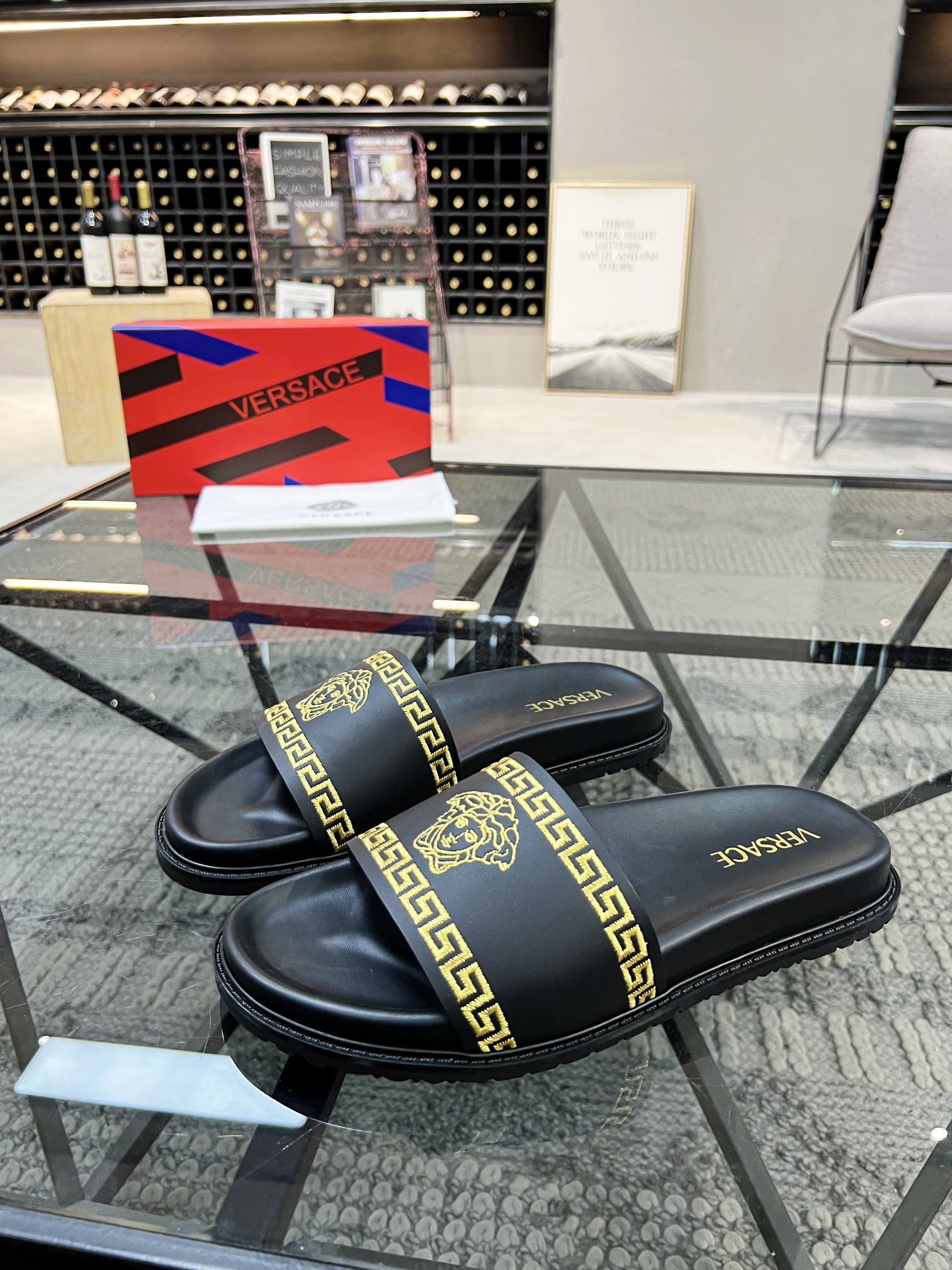 , $59 save up to 80% OFF,[IB186286] Size: US6.5=EUR38, US7=EUR39, US8=EUR40, US8.5=EUR41, US9=EUR42, US9.5=EUR43, US10=EUR44 , get Replica Versace Slippers For Men from China with free shipping and paypal accepted with return customer.