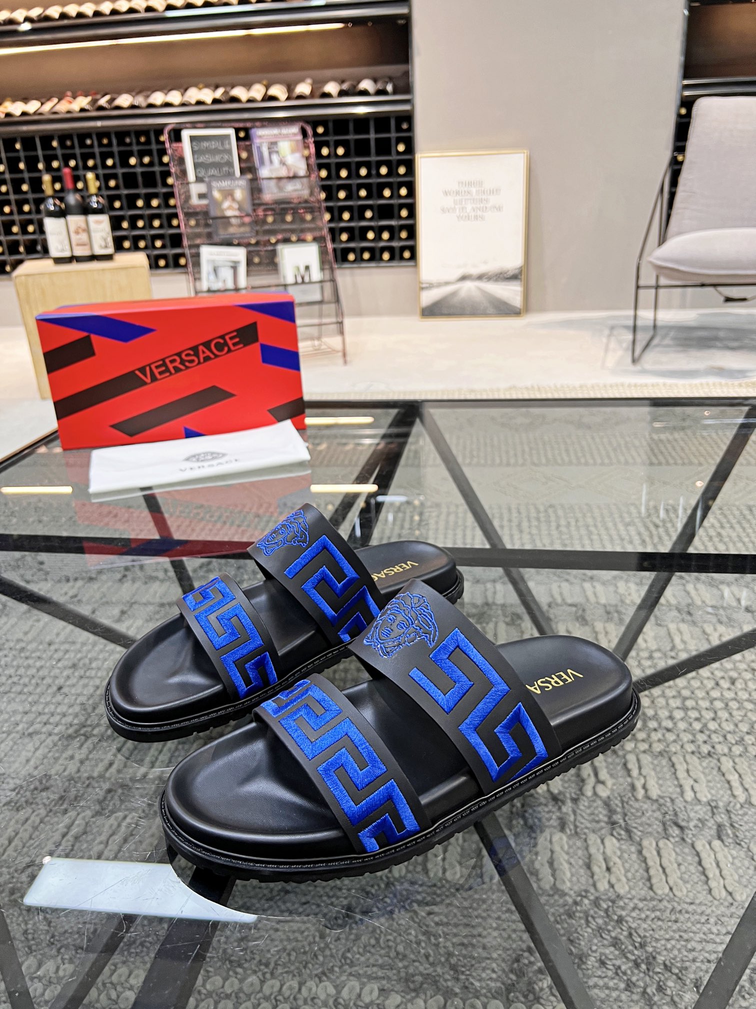 , $59 save up to 80% OFF,[IB186293] Size: US6.5=EUR38, US7=EUR39, US8=EUR40, US8.5=EUR41, US9=EUR42, US9.5=EUR43, US10=EUR44 , get Replica Versace Slippers For Men from China with free shipping and paypal accepted with return customer.
