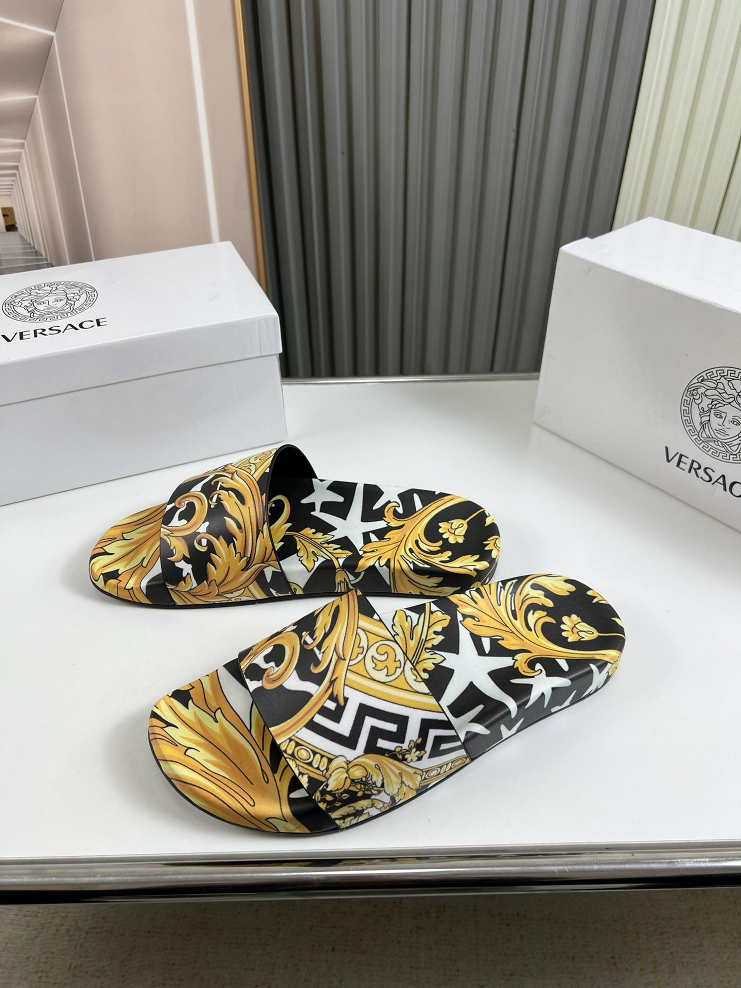 , $50 save up to 80% OFF,[IB186740] Size: US6.5=EUR38, US7=EUR39, US8=EUR40, US8.5=EUR41, US9=EUR42, US9.5=EUR43, US10=EUR44, US11=EUR45 , get Replica Versace Slippers For Men from China with free shipping and paypal accepted with return customer.