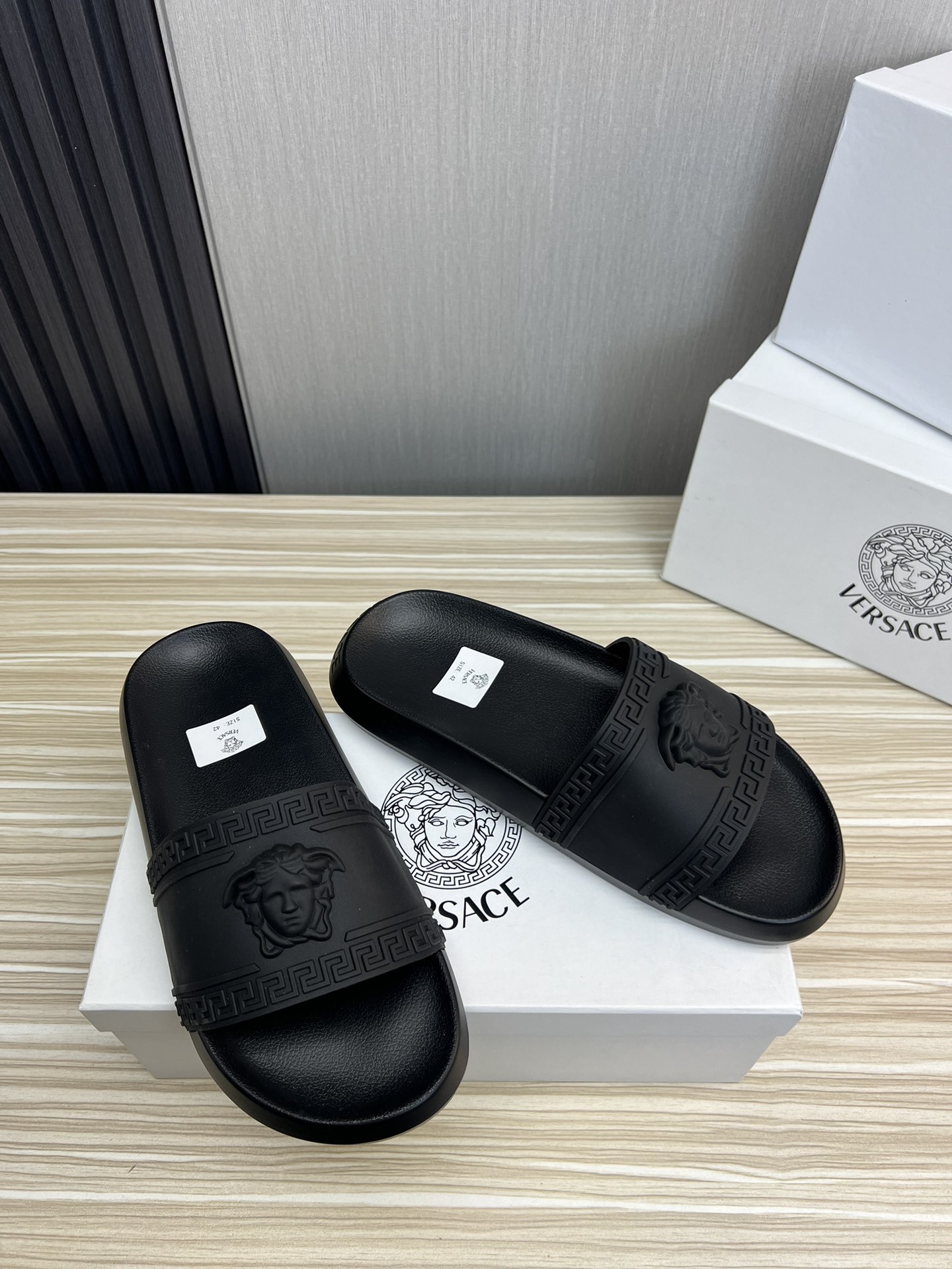 , $50 save up to 80% OFF,[IB195806] Size: US7=EUR39, US7.5=EUR40, US8=EUR41, US8.5=EUR42, US9.5=EUR43, US10=EUR44, US11=EUR45, US12=EUR46 , get Replica Versace Slippers For Men from China with free shipping and paypal accepted with return customer.