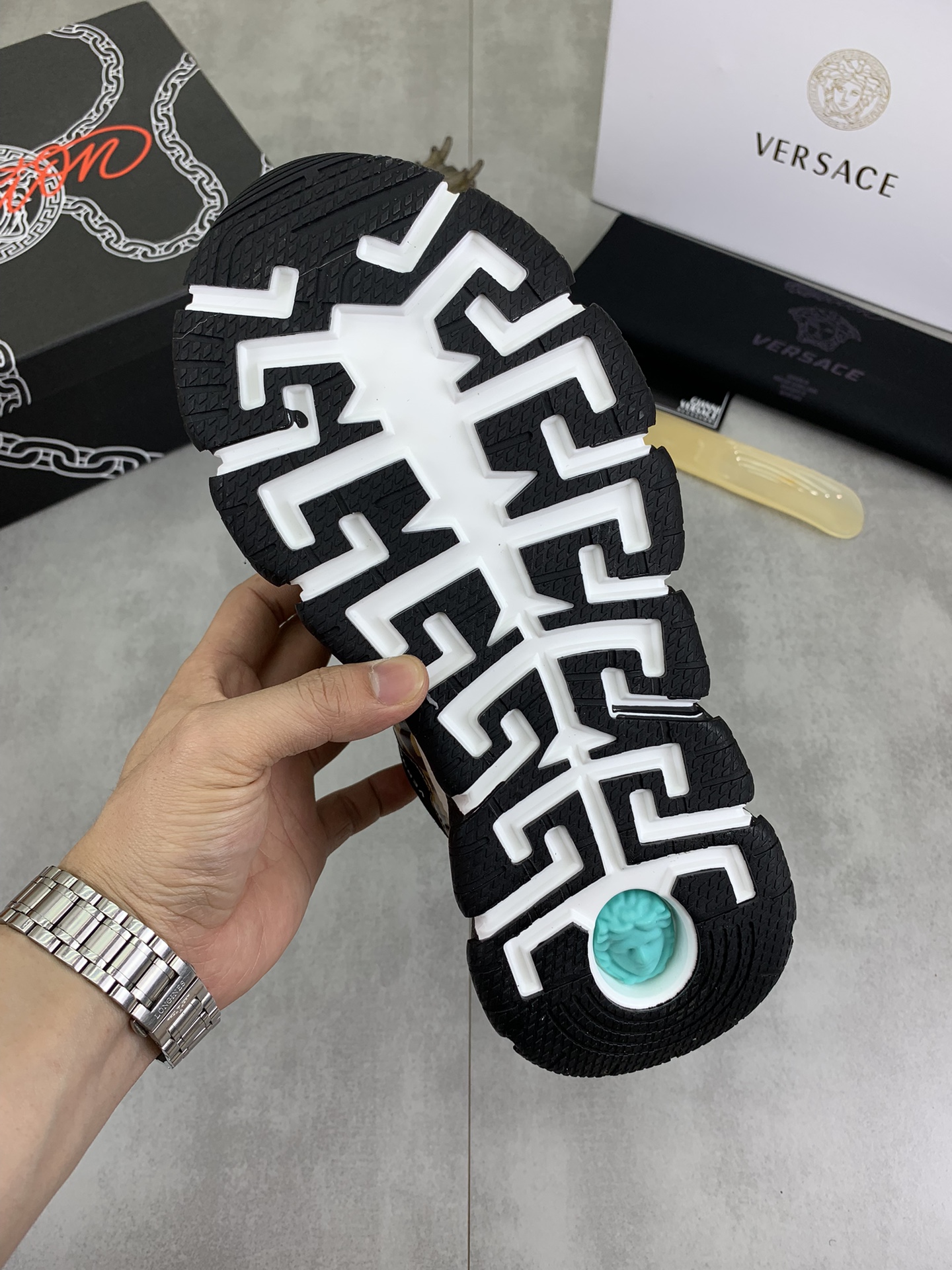 , $100 save up to 80% OFF,[IB197009] Size: US7=EUR39, US7.5=EUR40, US8=EUR41, US8.5=EUR42, US9.5=EUR43, US10=EUR44, US11=EUR45, US12=EUR46 , get Replica Versace Chain Reaction Sneakers from China with free shipping and paypal accepted with return customer.