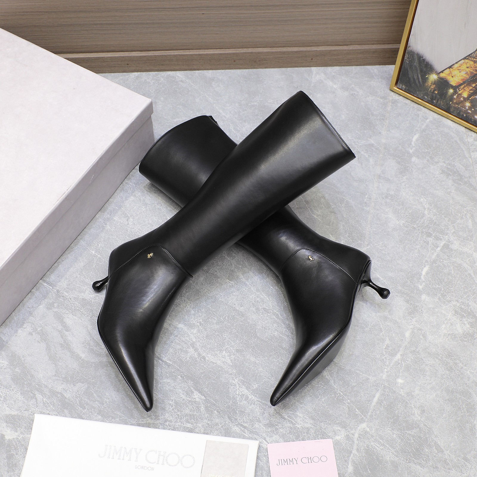 Cheap New Arrivals Jimmy Choo Leather Long Boots For Women in 199036