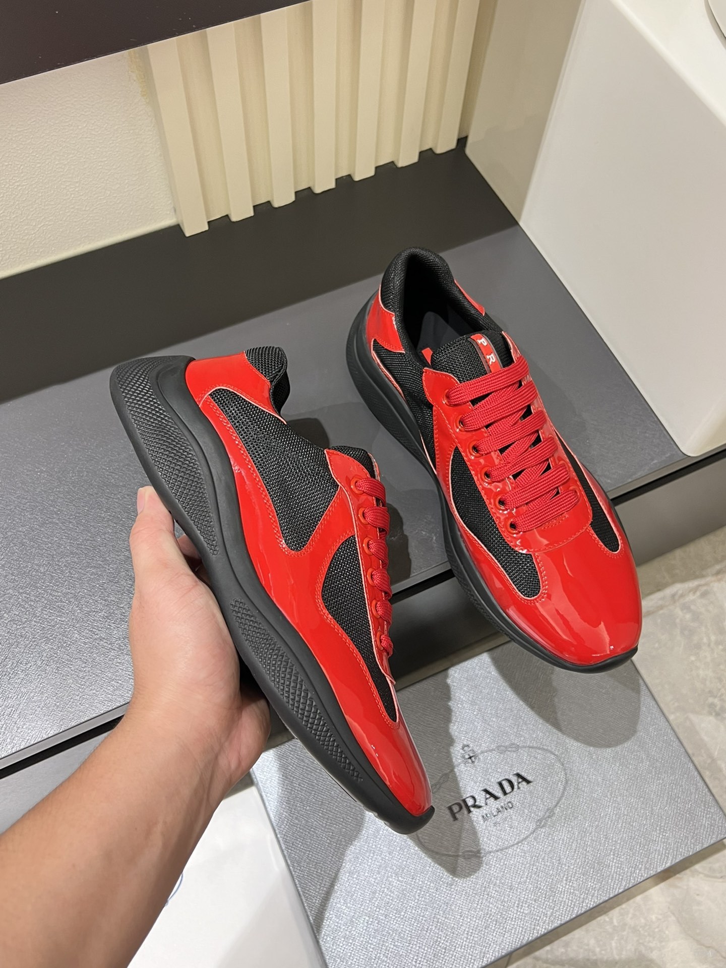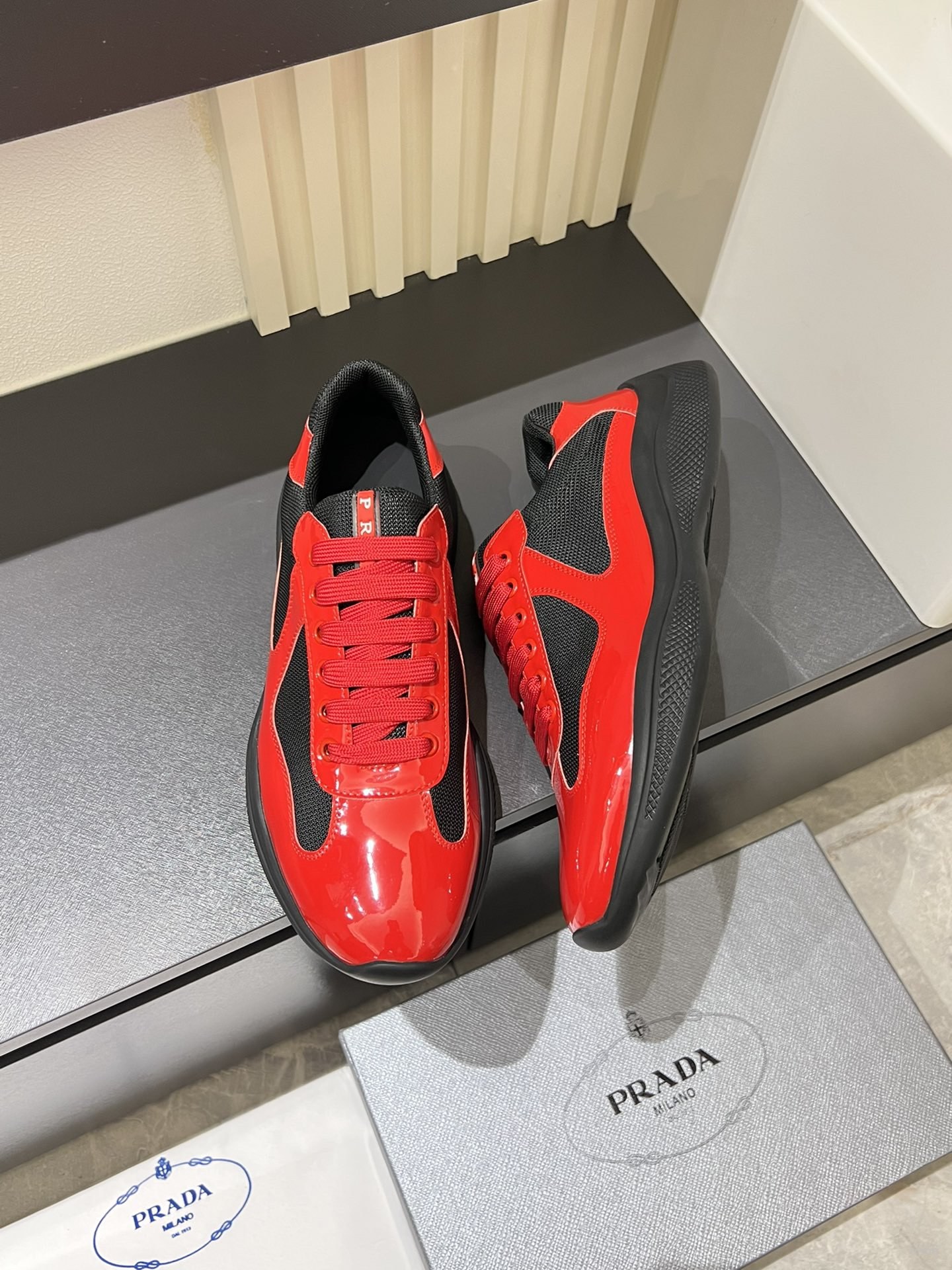 , $65 save up to 80% OFF,[IB201438] Size: US7=EUR39, US7.5=EUR40, US8=EUR41, US8.5=EUR42, US9.5=EUR43, US10=EUR44, US11=EUR45, US12=EUR46, US13=EUR47 , get Replica Prada America Cup Sneakers from China with free shipping and paypal accepted with return customer.