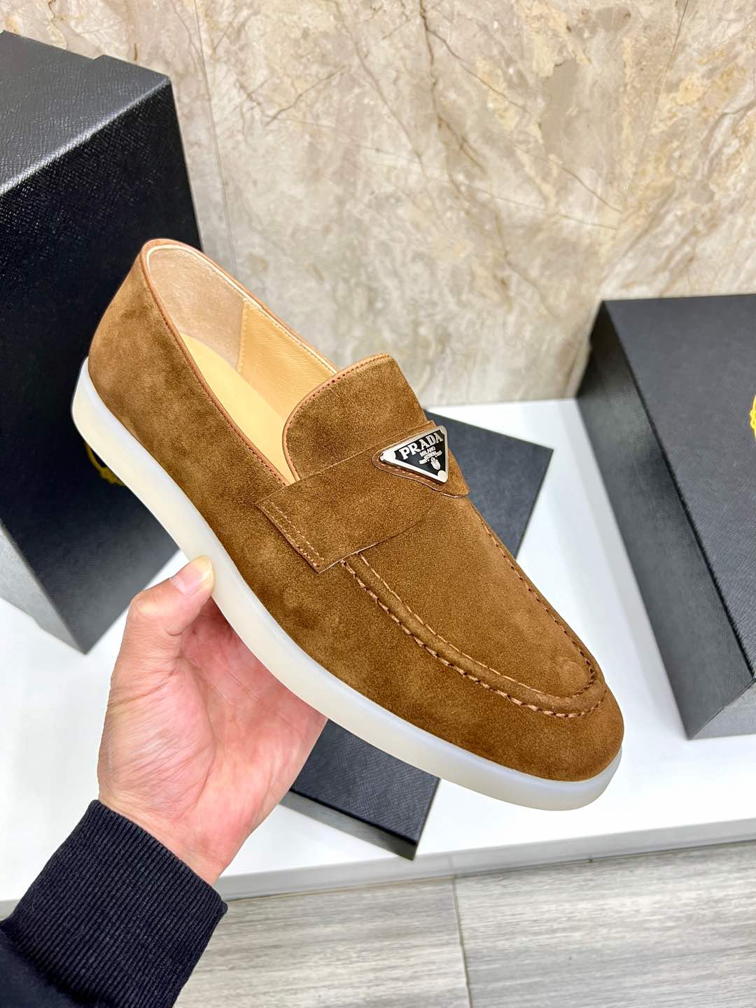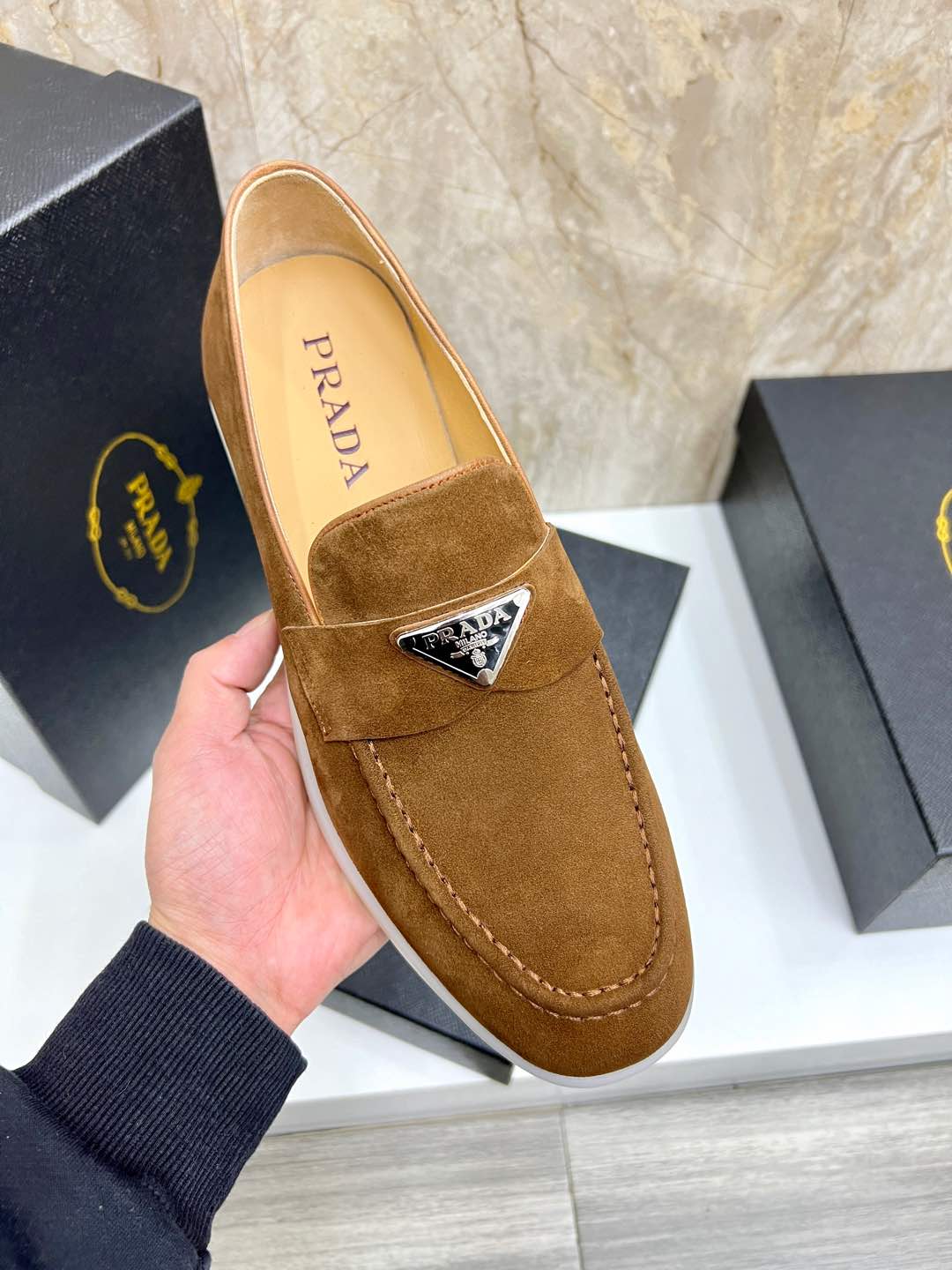 Cheap New Arrivals Prada Velvet Leather Shoes For Men in 201568