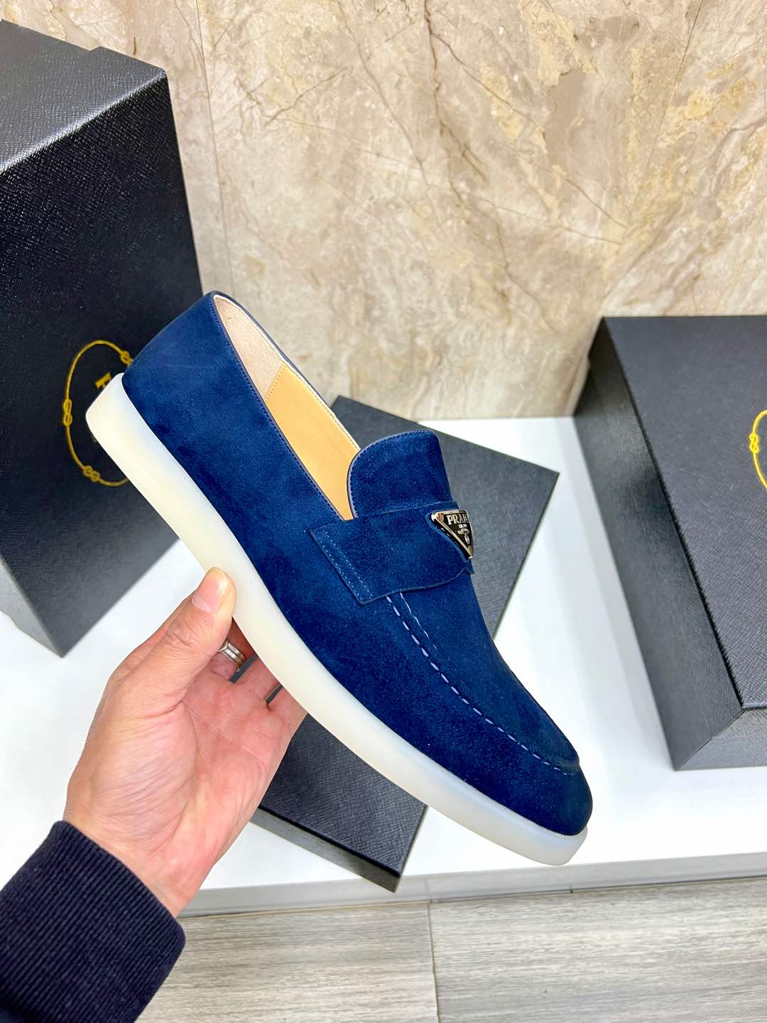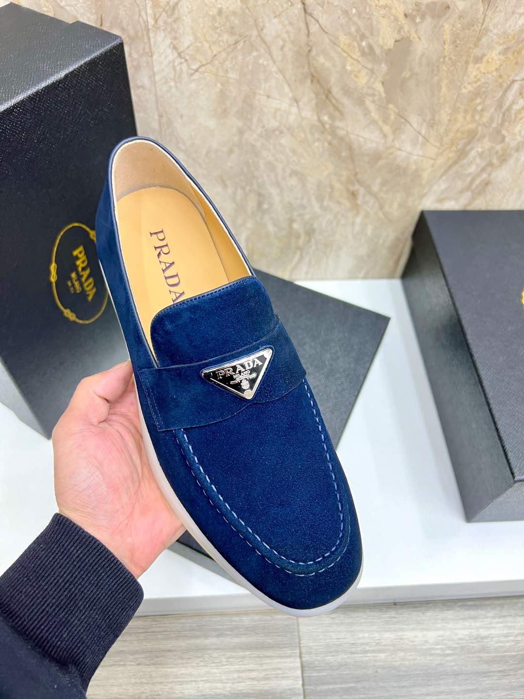 Cheap New Arrivals Prada Velvet Leather Shoes For Men in 201569