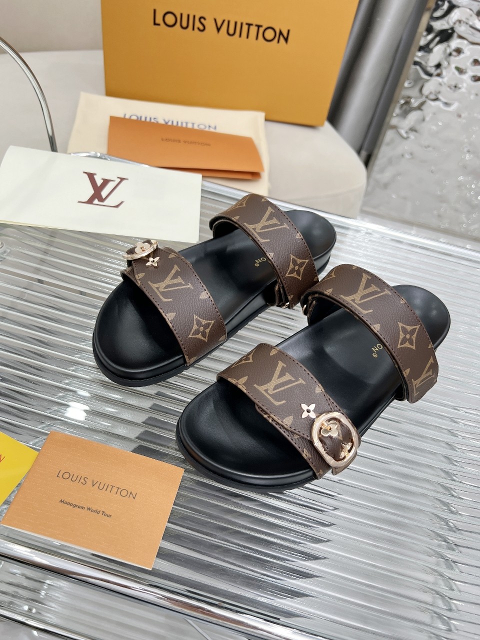 , $55 save up to 80% OFF,[IB203931] Size: US5=EUR35, US5.5=EUR36, US6.5=EUR37, US7=EUR38, US8=EUR39, US9=EUR40, US10=EUR41, US11=EUR42 , get Replica Louis Vuitton Slippers For Women from China with free shipping and paypal accepted with return customer.